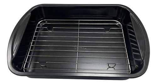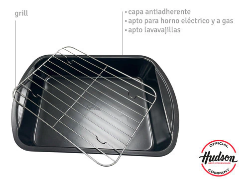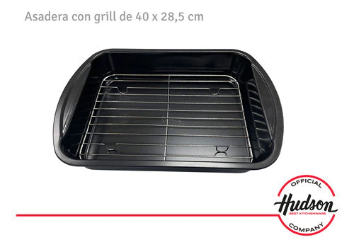 La Asadera Hudson de acero al carbono con rejilla es ideal para cocinar carnes, vegetales o piezas al horno sin que queden en contacto directo con los jugos, logrando preparaciones más crocantes y saludables. Su estructura resistente de 0.6 mm de espesor y generosas dimensiones (40x28x7 cm) permiten una cocción uniforme y de gran capacidad. La rejilla incluida, fabricada en acero, eleva los alimentos para asar de forma más eficiente y con mejor circulación de aire caliente.