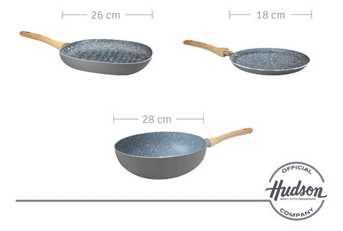 Descubrí la combinación ideal de calidad, diseño y versatilidad para tu cocina con el Set Hudson Granito. Este completo set incluye una batería de aluminio con antiadherente cerámico de 5 piezas, un wok de 28 cm, un jarro hervidor de 14 cm, una bifera de 26 x 26 cm, una panquequera de 22 cm y un set de 6 utensilios de nylon con mango de madera blanco. Todo lo que necesitás para cocinar fácil, rápido y saludable.