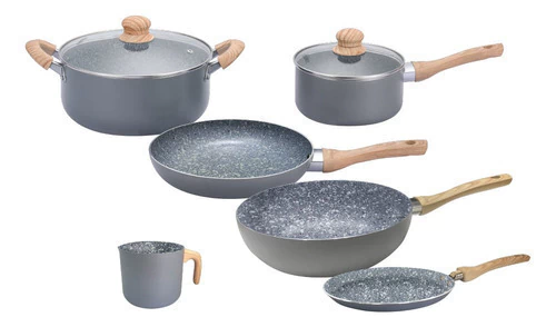 Esta batería de granito de aluminio con antiadherente es el complemento ideal para equipar tu cocina y disfrutar de una experiencia culinaria superior, combinando diseño moderno y excelente rendimiento.