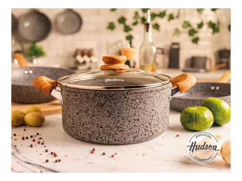 La Cacerola Hudson Granito Stone de 28 cm es la solución ideal para preparar comidas abundantes con estilo y eficiencia. Gracias a su cuerpo de aluminio forjado, ofrece una excelente distribución del calor, reduciendo tiempos de cocción y asegurando resultados homogéneos. Su revestimiento antiadherente efecto granito evita que los alimentos se peguen y permite una limpieza rápida. Con su moderno acabado gris piedra y tapa de vidrio templado, esta cacerola une resistencia, diseño y funcionalidad en una sola pieza.