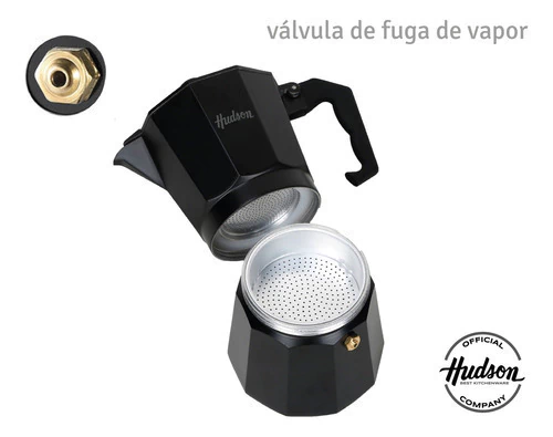 La Cafetera Hudson Black de 6 pocillos es la compañera ideal para quienes disfrutan del café fuerte y tradicional. Su diseño tipo moka, fabricado en aluminio resistente, garantiza una excelente distribución del calor y un sabor concentrado, como en las cafeteras italianas de toda la vida. Su acabado en color negro mate con detalles metálicos la convierte en una pieza elegante, duradera y práctica.