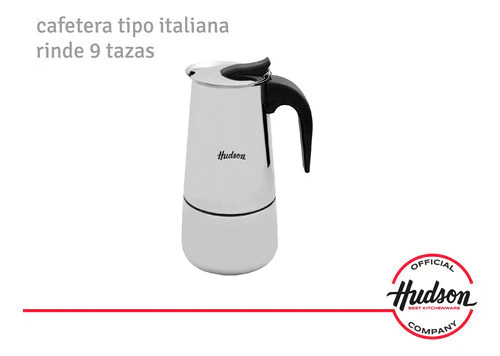 La Cafetera Italiana Hudson de Acero Inoxidable es la elección ideal para los amantes del café con personalidad. Su diseño tipo moka, fabricado íntegramente en acero inoxidable pulido, permite una cocción rápida, uniforme y sin alterar el sabor del café. Con una capacidad de 9 pocillos (aproximadamente 450 ml), es perfecta para compartir. Compatible con cocinas a gas, eléctricas y vitrocerámicas.