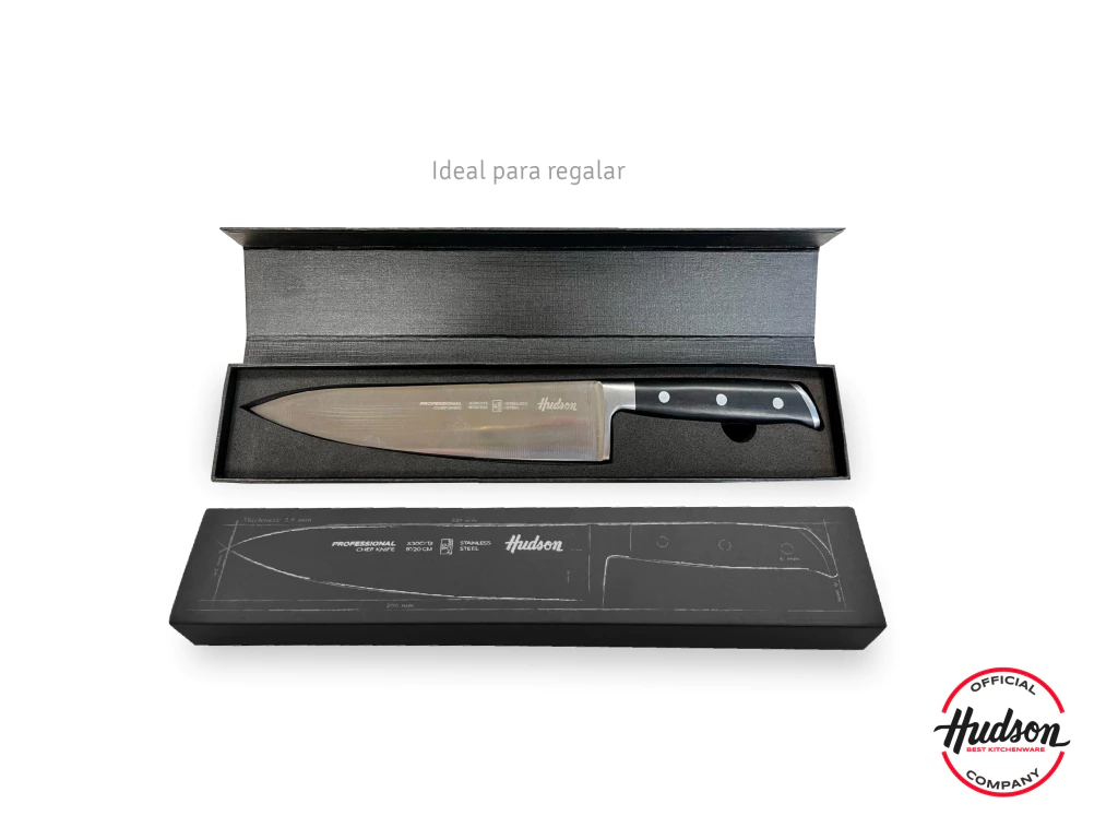 El Cuchillo Chef 8" de la Línea Hudson Professional es la herramienta imprescindible para quienes valoran la calidad y la precisión en la cocina. Ahora, además, incluye un estuche exclusivo, ideal para regalar o transportar con seguridad.