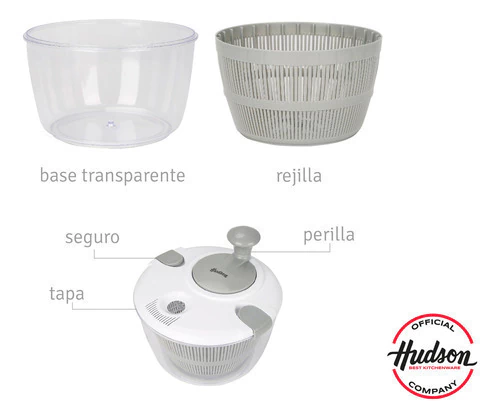 El Centrifugador de Verduras Hudson es la herramienta ideal para secar fácilmente hojas verdes, frutas y vegetales luego del lavado. Fabricado en plástico resistente y liviano, su sistema giratorio manual permite eliminar el exceso de agua de forma rápida y sin esfuerzo, mejorando la textura de tus ensaladas y evitando el exceso de humedad en tus preparaciones. Su diseño en color blanco aporta un toque limpio y moderno a tu cocina.