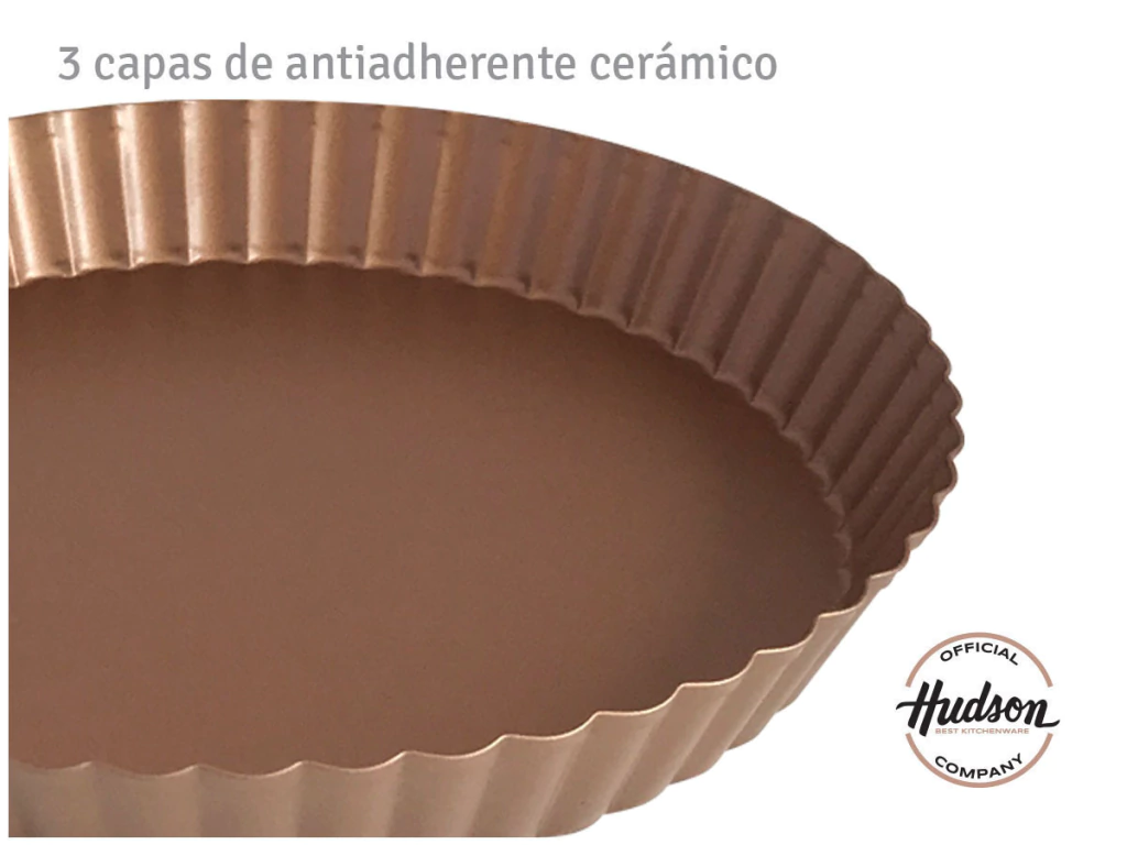 Disfrutá de la experiencia de hornear con el Molde Tartera Hudson de 25 cm, fabricado en una sola pieza de acero carbono con doble capa antiadherente sin PFOA, que garantiza una cocción homogénea y un desmolde impecable. Su formato clásico, resistente y elegante, lo convierte en el aliado ideal para preparar tartas dulces o saladas, quiches o recetas caseras con un toque profesional. Su acabado en cobre metalizado le suma distinción a tu cocina.