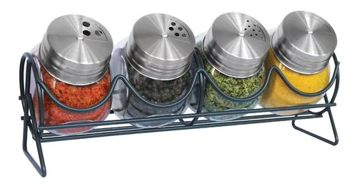 Organización y estilo para tu cocina. El Rack Especiero Hudson con 4 jarros y tapa de acero inoxidable es la solución práctica y elegante para tener tus especias favoritas siempre a mano. Con un diseño compacto de 28 cm de ancho, este especiero encaja perfectamente en estantes, mesadas o alacenas.