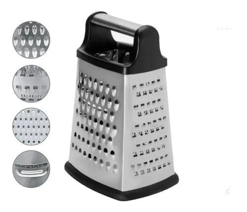 Usos recomendados: Rallar quesos duros o blandos, vegetales (zanahoria, papa, zucchini), cítricos, pan seco, chocolate, nuez moscada, etc.