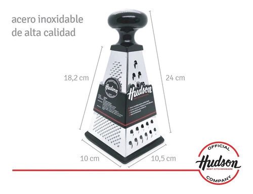 El aliado ideal para tus preparaciones diarias. El Rallador de Cocina Manual Hudson RA03, fabricado en acero inoxidable, es práctico, duradero y fácil de manejar. Su diseño compacto lo hace ideal para rallar de forma rápida y precisa quesos, verduras, frutas, chocolate, pan duro y más.