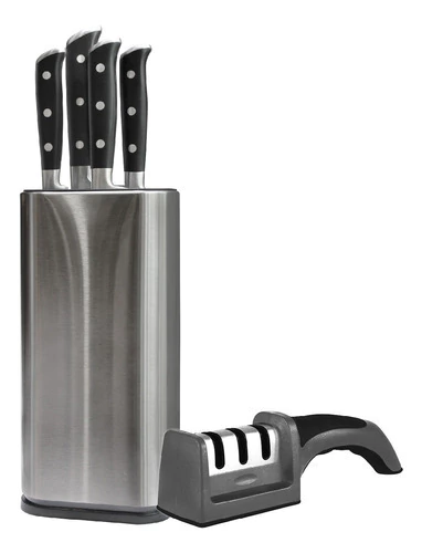 SET DE 4 CUCHILLOS LÍNEA PROFESSIONAL INOX. MANGO CON REMACHES NEGRO + Afilador De Cuchillos 3 Tiempos