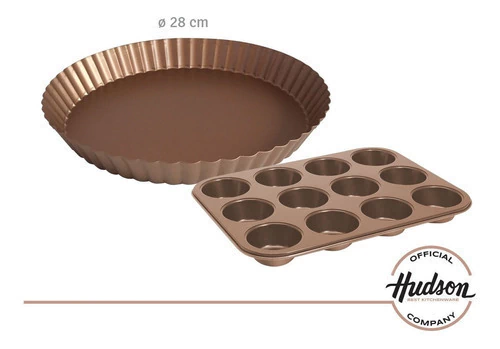 Llevá tus recetas al siguiente nivel con este completo set de repostería Hudson, compuesto por una tartera de 28 cm y un molde para muffins de 12 cavidades. Fabricados en acero carbono con revestimiento antiadherente libre de PFOA, son perfectos para una cocción pareja y desmolde impecable. Prácticos, resistentes y listos para crear magia en tu horno.
