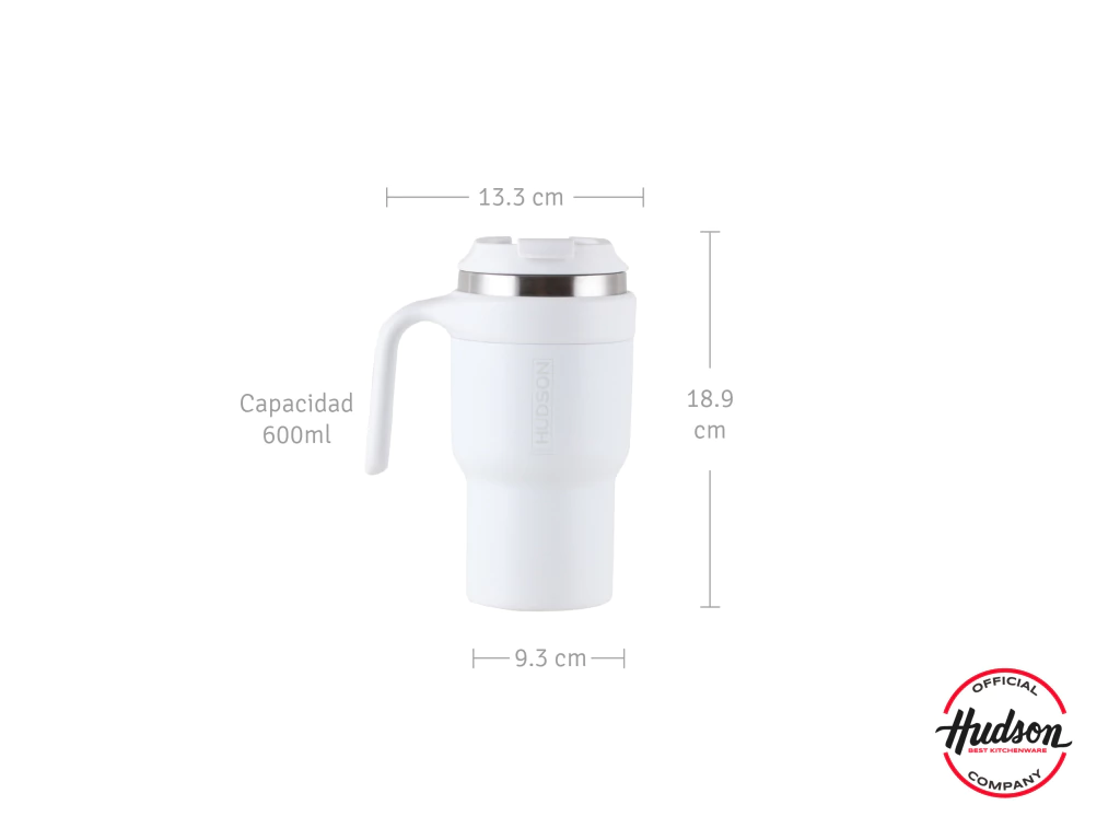 Disfrutá tus bebidas preferidas en cualquier momento y lugar con este vaso térmico blanco de acero inoxidable de 600 ml. Combiná practicidad, durabilidad y un diseño elegante para acompañar tu rutina diaria, tanto en la oficina, en casa o durante tus viajes.