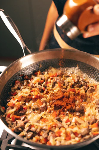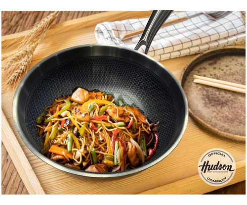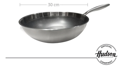 El Wok Hudson de 30 cm de acero inoxidable profesional está diseñado para ofrecer una cocción potente, pareja y saludable. Ideal para salteados intensos, wok tradicional o cocciones a alta temperatura, su estructura robusta y fondo encapsulado lo hacen compatible con cocinas a gas, eléctricas, vitrocerámicas e inducción. Su elegante acabado plateado y mango remachado brindan una experiencia profesional en tu cocina, combinando durabilidad, estilo y eficiencia.